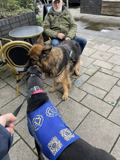 Gigi has had a weekend foster where she settled into the house straight away. No reaction to household noises and managed stairs. She walks well on the lead and spent a couple of hours on our Pets at Home stand. She did get a little excited around a small child so probably older children would be best, just so she doesn't knock little ones over.