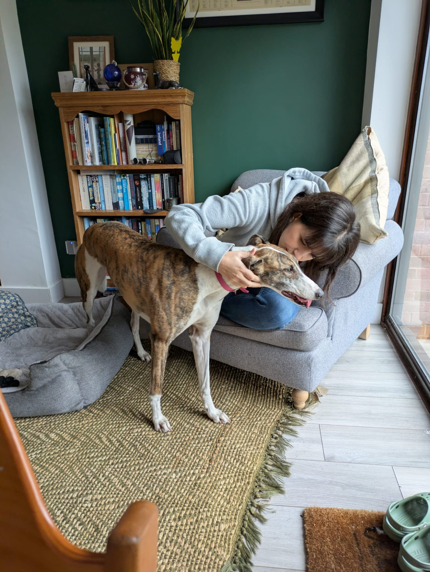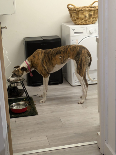 We think Katie would prefer a household without any boisterous young children or other dogs as she does enjoy her own space and is a bit of a grazer when it comes to food - She likes to take a bite, perhaps wanders off to contemplate life, and then returns for a snack later.