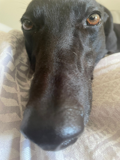 Margo has shown herself to be an extremely loving and affectionate girl. She is very sweet and enjoys being around people. She has many wonderful qualities and can be quite lazy even by greyhound standards perhaps enjoying home comforts but also tinged with a bit of nervousness.