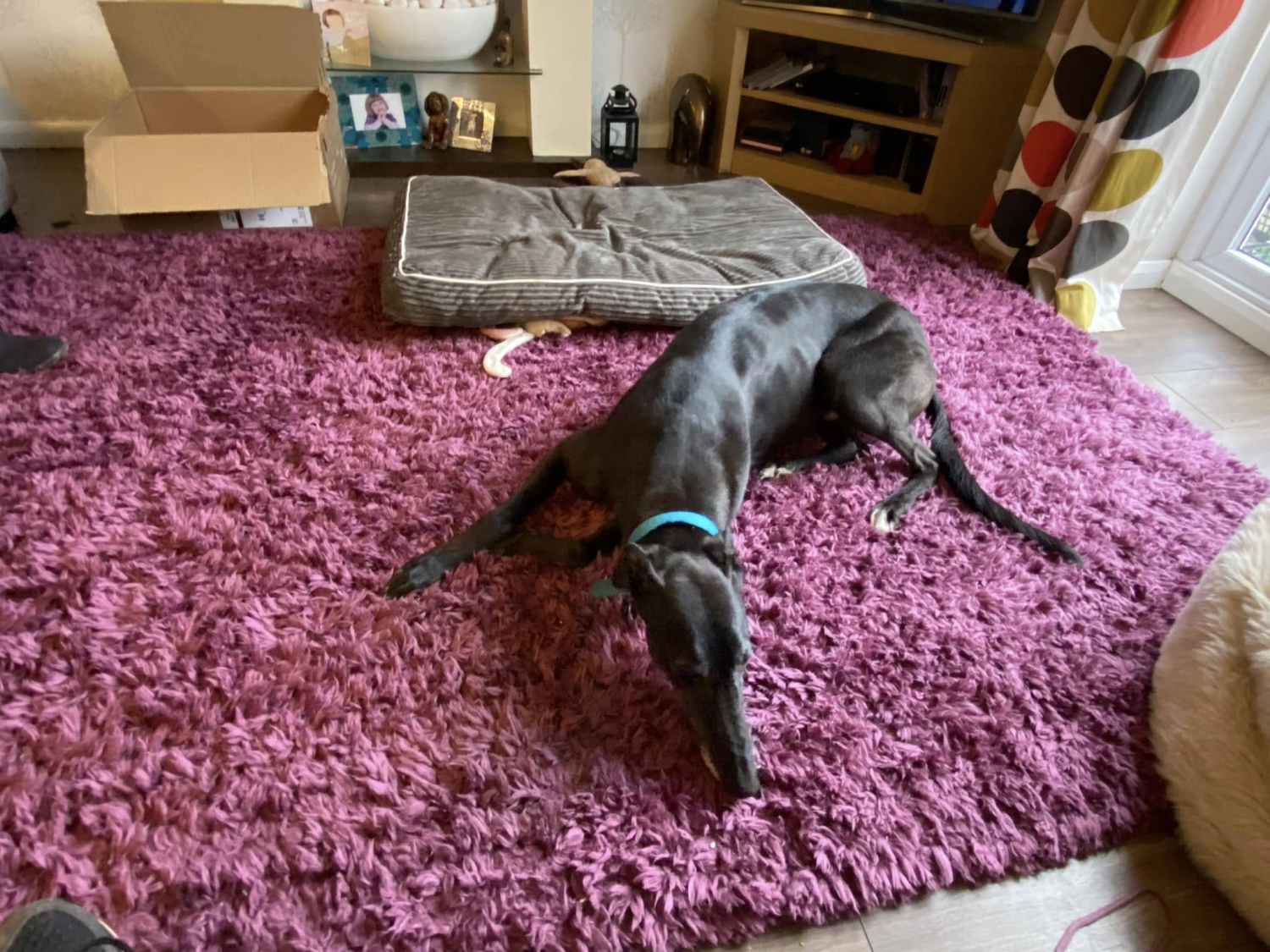 Sharon Stephenson was one of the first Home Run Hounds happy homing stories, adopting Dozer (Aero Dozer) from our Monkspath kennels back in October 2022. Sadly, Dozer found himself as a solo dog after his two besties passed over the rainbow bridge. So Sharon began the search for a new companion for him. After fostering Carter (Eire Carter) for a time to check that everything worked out, Sharon today made everything official. Dozer and Carter have become great friends and can now look forward to enjoying many more lazy Summer days sunbathing in the back garden together!
