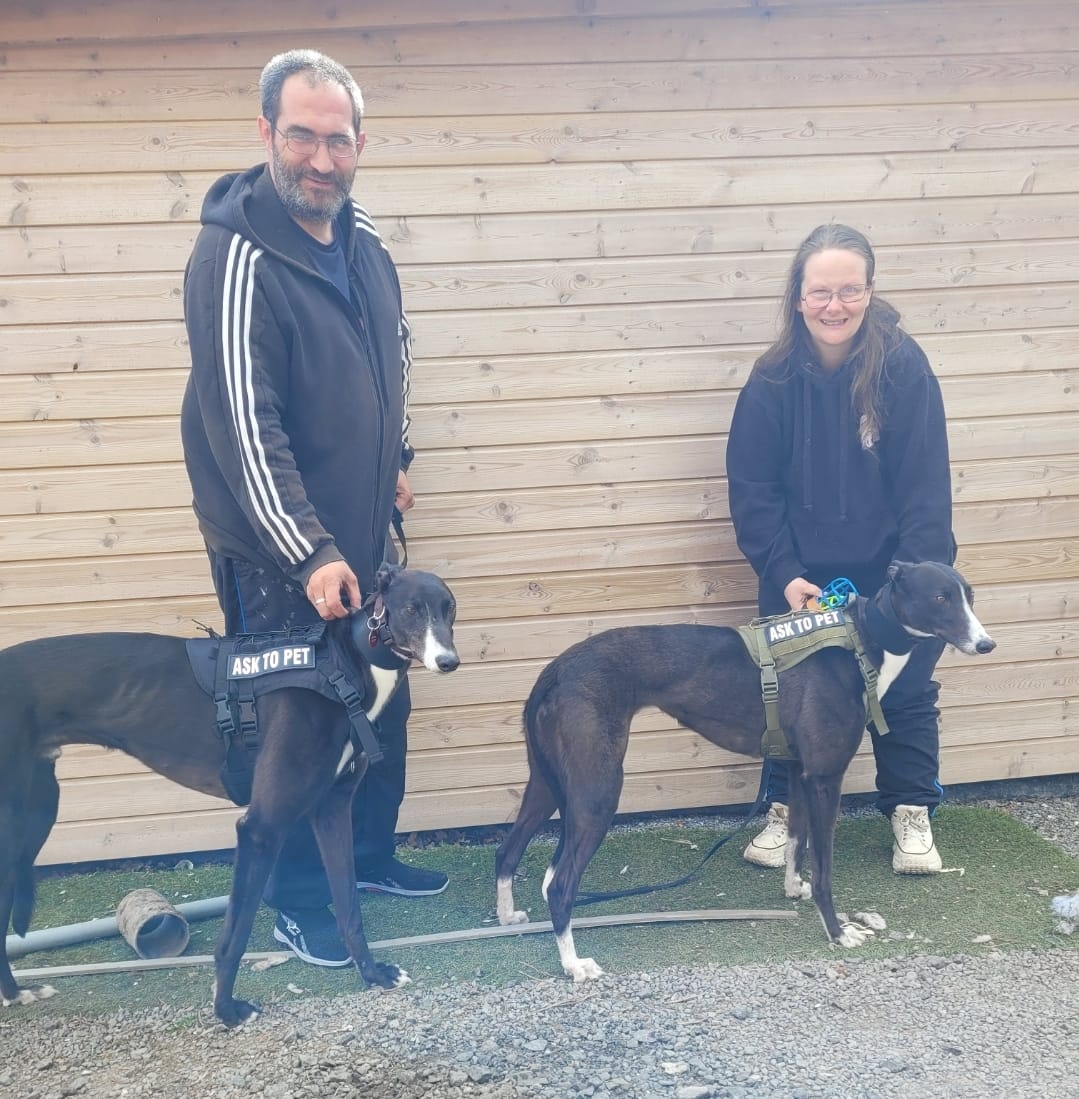 Having homed greyhounds before, this fabulous couple knew it was sometimes easier to have 2 than one and didn't want to split them up, as they had always lived together.