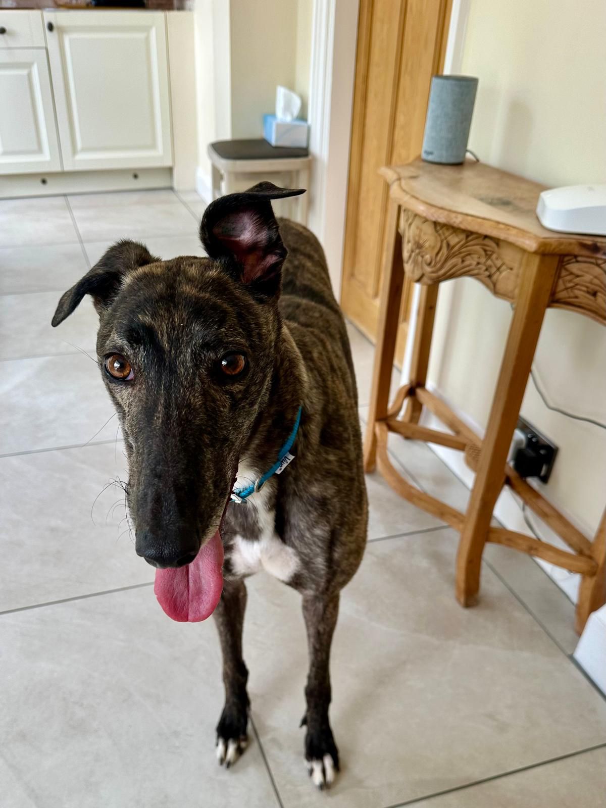 Having not had a pup in the house for a while, they had begun to talk about having a dog as a pet for them but had not considered a greyhound. However, Shane leant on Dave and the reservation was made, how could anyone resist this gorgeous boy.