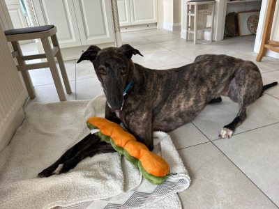 We are delighted that Jean and Dave have joined our greyhound family and we look forward to hearing about Freddie’s adventures, he has certainly landed on his lucky paws with Jean and Dave.